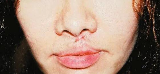 她的嘴巴变成了兔唇,医生建议她把整个嘴都割开,用耳后的皮肤做移植手术。