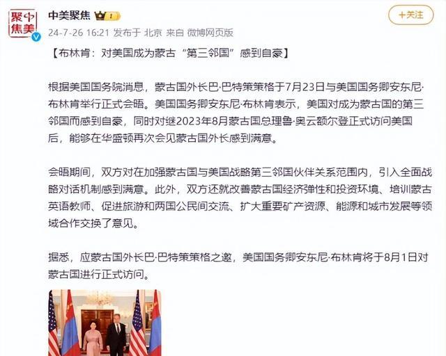 因此蒙古国开始寻找美国进行贸易交流,蒙古的政策也变得更加亲美。