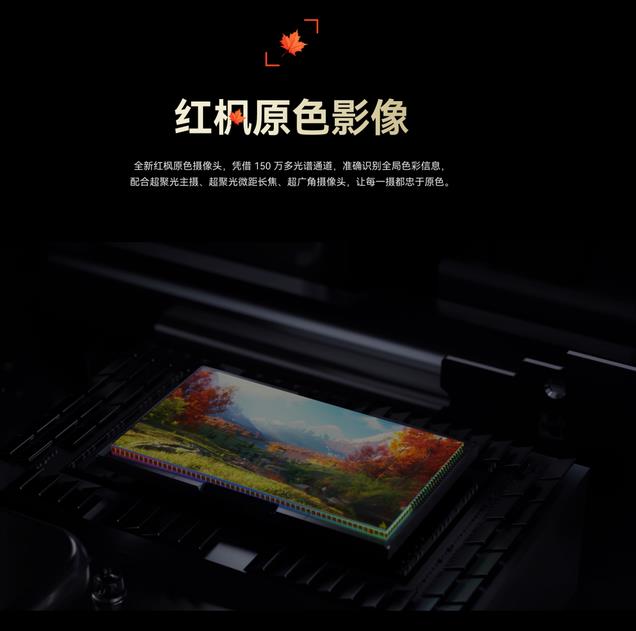 这颗红枫多光谱传感器来源于GalaxyCore(格科微),光谱成像模块可以捕获更广泛的色彩数据,从而提高色彩准确性、更自然的肤色并改善阴影保留。多光谱 CIS 的潜力还可能包括皮肤检测、健康管理和食物监测。