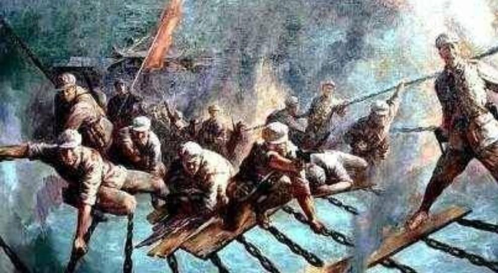 红军要想过河就只能徒手抓住铁链,然后穿过枪林弹雨。事已至此,想要安全渡河显然已经不可能了。