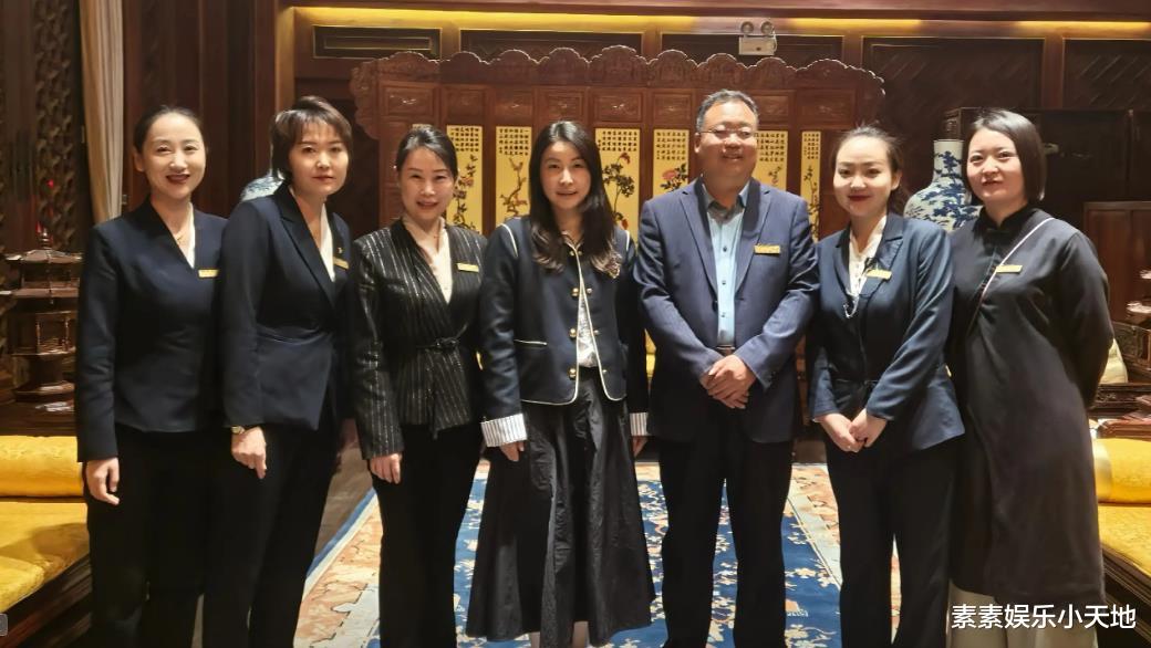 郭晶晶也和饭店里的工作人员一起合影,镜头之中的她尽显大家闺秀的气质。