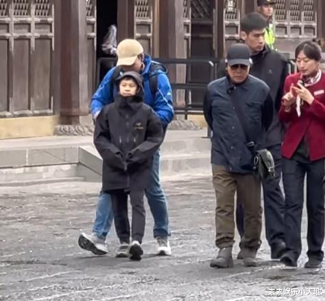 当时两个女儿陪在母亲郭晶晶的身旁,儿子霍中曦和爷爷还有爸爸霍启刚走在一起,家人一起同行,霍老爷子认真听讲解员讲解。