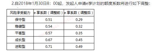 二,2018年1月30日8:00起,全线下调发起人申请“稳盈-e享计划”的额度系数。