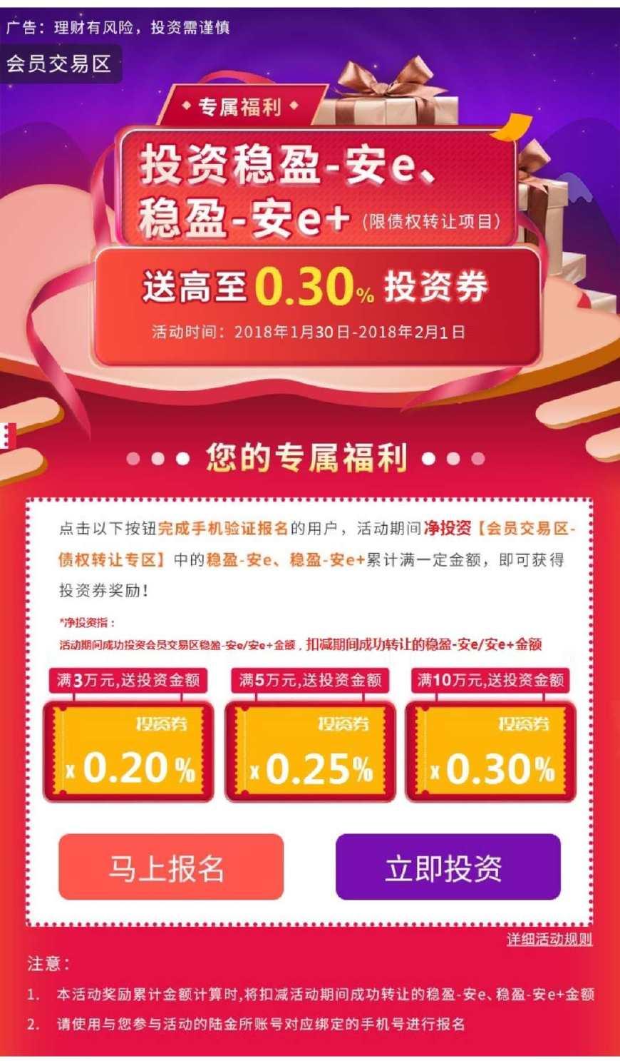 二,对于专属用户,投资稳赢安e和稳赢安e+,有不同比例的返券活动。