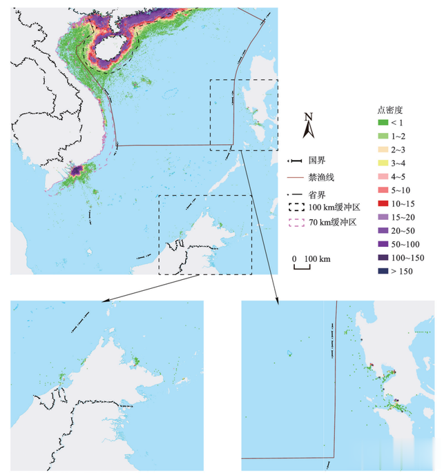 2018年南海渔船活动强度分布(含中国、越南渔船)