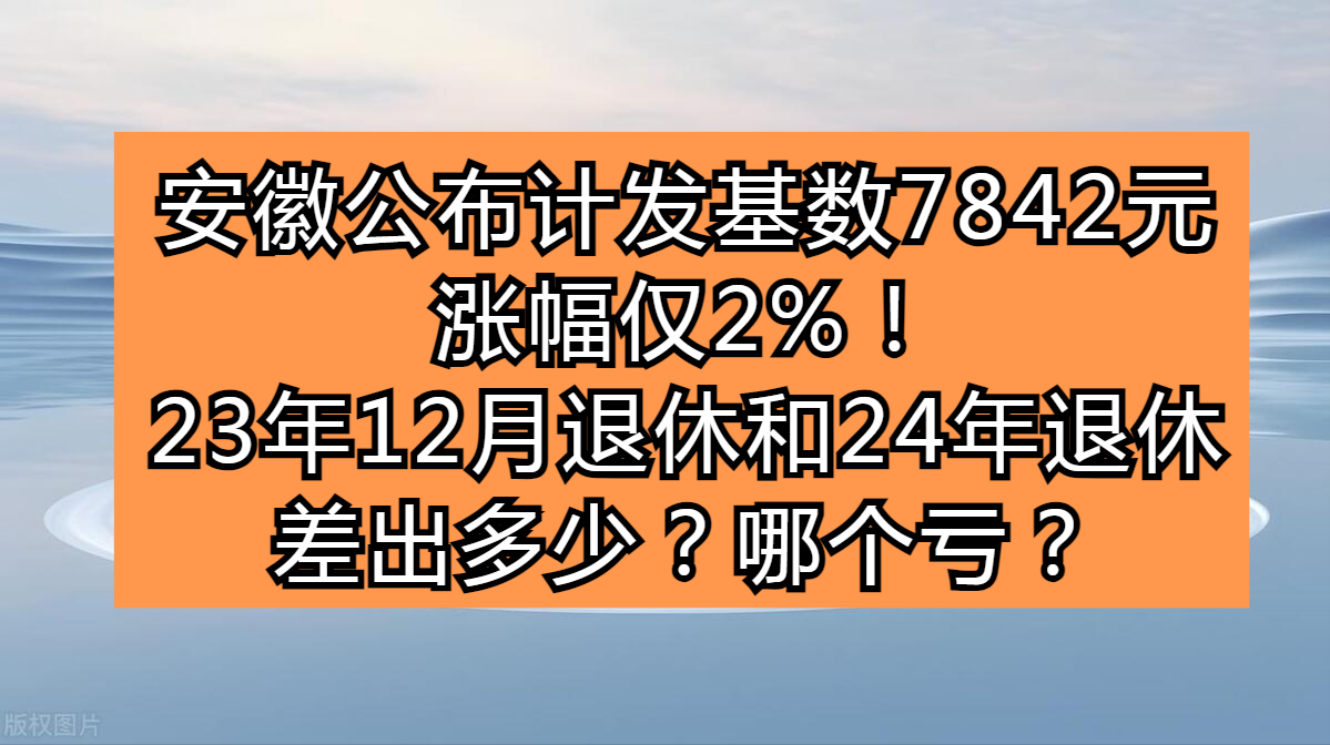 安徽省人社网在12月11日发布养老金计发基数!安徽省2024年退休人员基本养老金计发基数为7842元/月!2023年为7688元,仅上涨154元,涨幅2%。全口径为7044.38元,涨幅为5.17%,全口径与计发基数之间差额为797.62元。