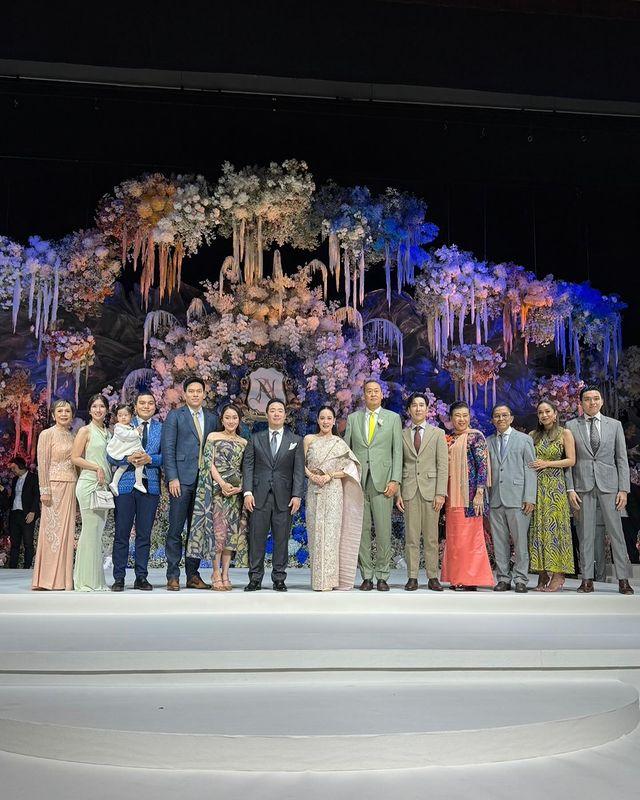 在这场富丽堂皇的婚礼上,Siri公主的裙子无疑是一道亮眼的风景线,蓝色、粉色和白色交织出的图案为整个婚礼增添了一抹活泼与浪漫。新娘虽是焦点,但Siri公主的时尚造型也让人过目难忘。