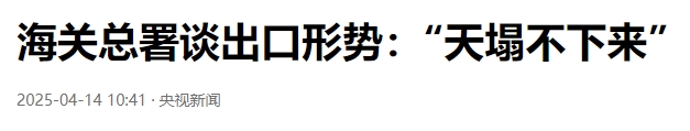 央视新闻 2025-04-14 10:41 海关总署谈出口形势:“天塌不下来”