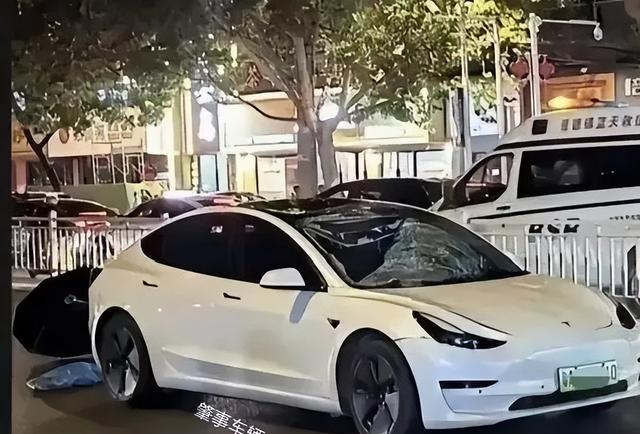 然而在过马路的时候,突然冲出来一辆特斯拉。