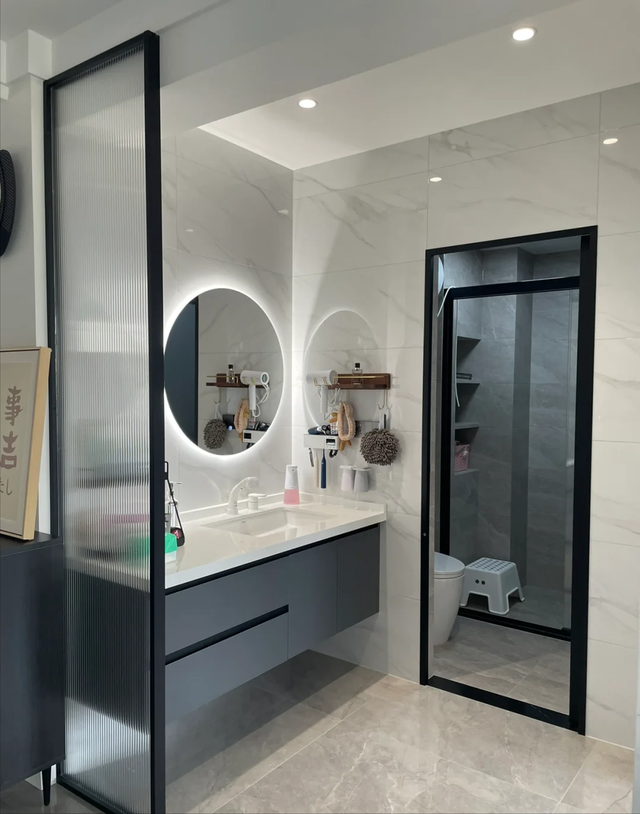 卫生间虽然不大,但布置得很巧妙。干湿分离,镜子带LED灯,洗手台上总是摆着香薰和护肤品,没有杂乱无章的感觉。她说,哪怕只是洗脸刷牙的几分钟,也希望是轻松舒服的状态,才不会把生活过成将就。
