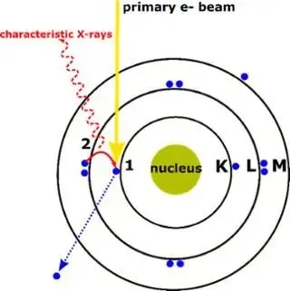 首先,电子束与样品接触,将能量传递给样品原子的电子,使得这些电子能够跃迁到更高能级的轨道,或者从原子中脱离出来,留下空位。这些空位带有正电荷,会吸引更高能级轨道上的电子来填补。