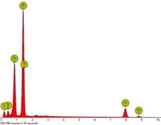 典型的EDX光谱:y轴描述X射线数量,x轴是X射线的能量。峰的位置是对元素的识别,峰高有助于对样品中各元素浓度的量化。