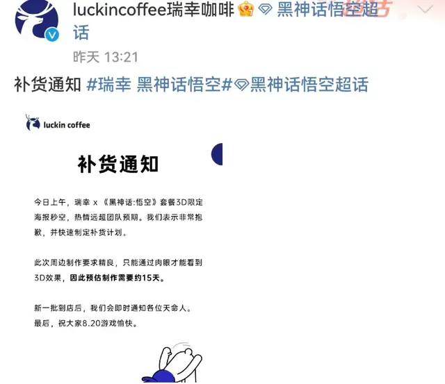 媒体推测从预售开始到现在,黑神话或许已经回本,在此之前瑞幸和黑神话联名的咖啡周边,直接卖到断货了。