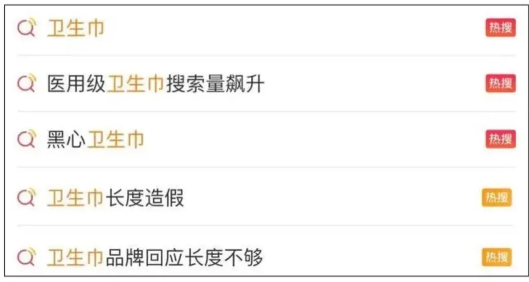 但从这轮争议导致医用级卫生巾搜索量上涨的情况看,至少有两个问题就摆在那: