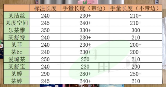 有网友亲测,10个卫生巾品牌,无论手量长度是否带包装边,均不足标注长度。不带包装边(仅棉芯部分)的最大偏差为50mm。