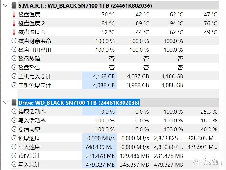 这里也通过实际测试分享一下这款西部数据WD_Black SN7100 SSD 1TB容量版本的实际读写表现。
