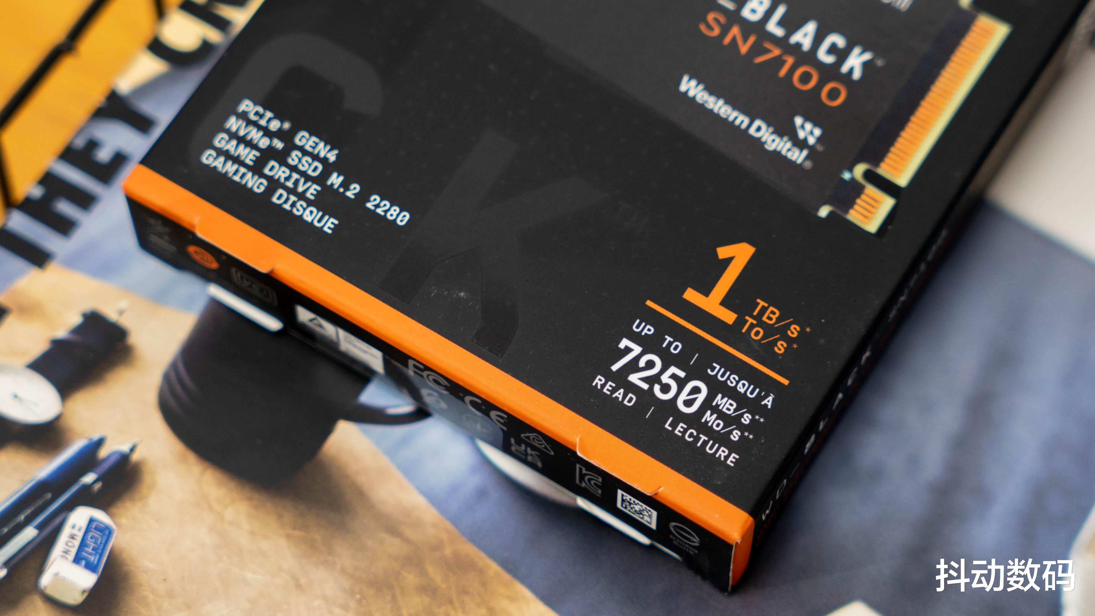 WD_Black SN7100包装上也可以看到1TB容量的SN7100读取达到了7250MB/s,支持 PCIe 4.0 协议。读写速度相比同系列的SN770产品提升了非常多,几乎可以比肩旗舰级的SN850X。这样的提升我也相信也是很多玩家都喜闻乐见的,也让玩家在SN850X之外更多了一个选择。