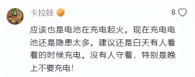 还有网友猜测,这这起事故可能是电池充电起火导致的,现在电池的隐患还是太多了,建议电动车在白天有人看管的情况下充电,晚上尽量不要充电,以免发生意外。