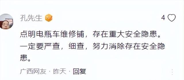 网友表示,现在很多电动车维修铺都存在了大量的安全隐患,一定要严格排查所有安全隐患,以免意外再次发生。
