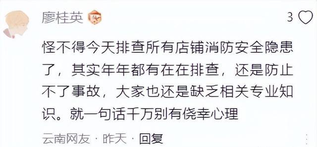 网友表示,怪不得国家经常排查店铺的消防隐患问题,这个东西真的你啊你奶都在排查,结果还是防不了事故发生,说到底还是大家缺乏这方面的知识,总是抱着侥幸的心理。