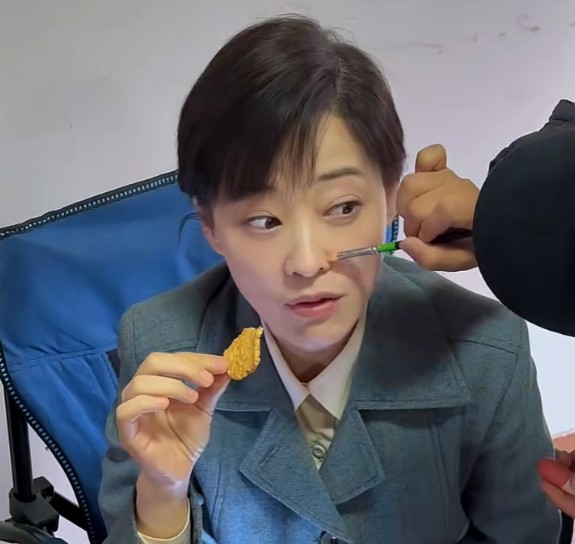 不仅如此,梅婷的发型也是剧中的发型,看来这是她们中午吃饭休息时拍下来的场景吧。