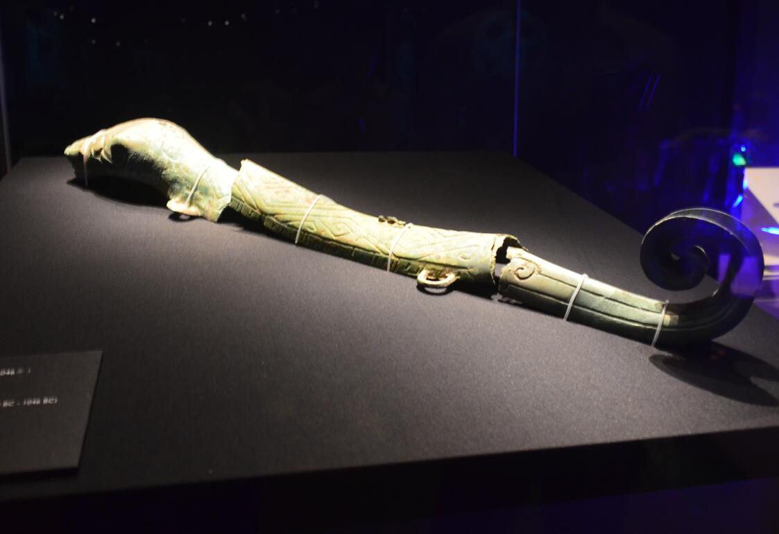 商朝铜蛇,在古代有什么象征意义? 商朝铜蛇(公元前1600-前1046年),蛇头部宽大,蛇身饰菱形云纹,蛇尾上翘并向前内卷。古人认为蛇与龙为衍变关系,而蛇也常被视为龙属,故二者可互为置换。#博物馆# #文物#