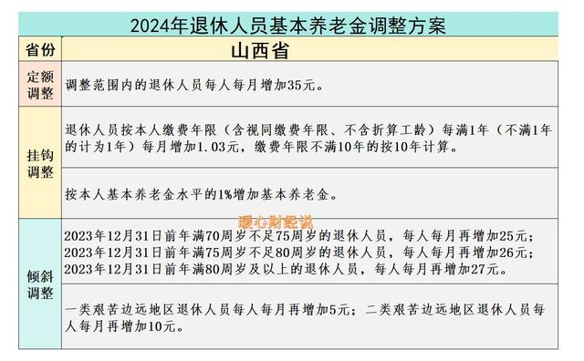山西省2024年的养老金调整方案是这样的: