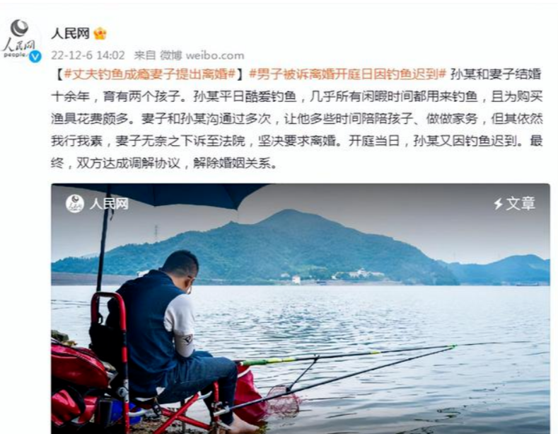 钓鱼作为一种休闲运动深受大众的喜爱,通过参与钓鱼我们不仅可以享受自然、放松身心,而且还可以锻炼个人的耐力、专注力和抗挫折能力,因此钓鱼一直被视为一种非常不错的爱好。但是,如果钓友过度沉迷于钓鱼,单身时还好,如果是已婚的人,那很有可能会因此而妻离子散。