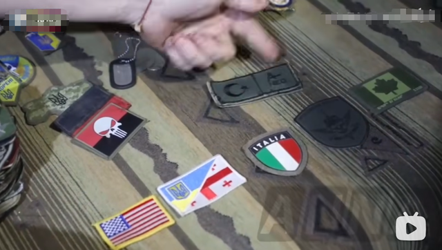 ▲瓦格纳士兵展示自己缴获的外籍乌军臂章