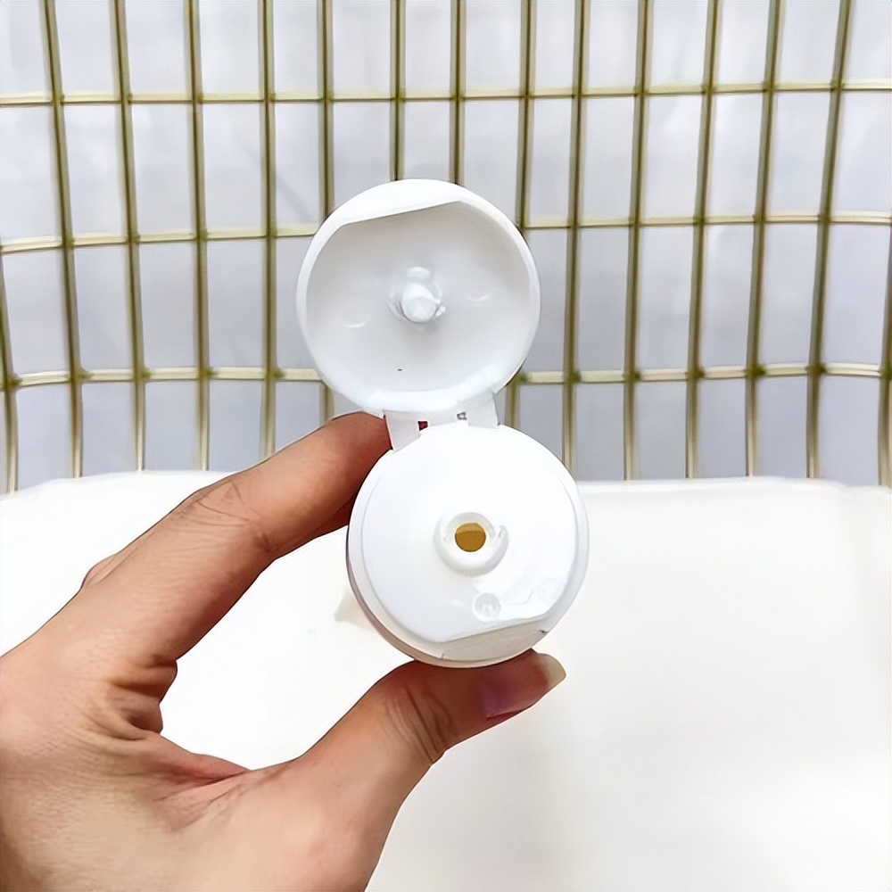 2. 挤出适量洁面乳:适量挤出洁面乳于掌心,一般约豌豆大小即可。