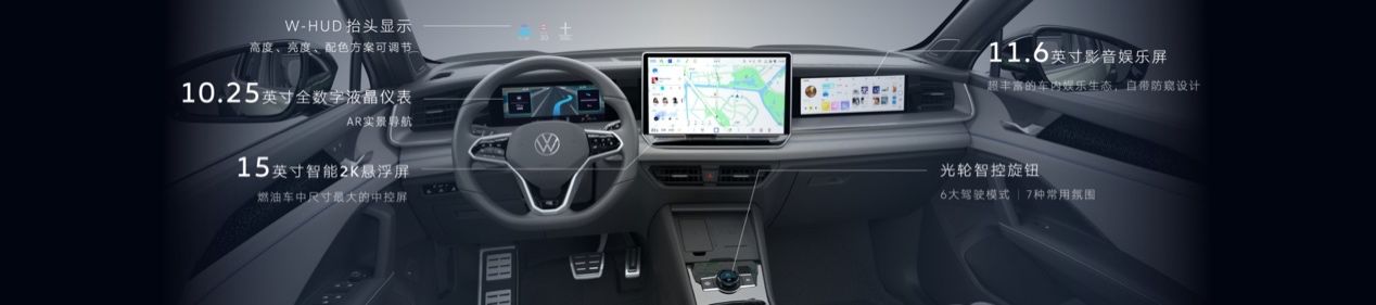 基于“好用”和“想用”的理念,全新探岳L 智能座舱以 5 + X 多屏多模交互系统为核心。其中,“5”即5块屏幕,包含了15 英寸 2K 中控屏、11.6 英寸副驾影音娱乐屏,搭配丰富的车内娱乐生态,灵动又默契;另外,10.25 英寸全数字液晶仪表,能实现 AR 实景导航,导航信息与实景路面融合,让驾驶更加专注;抬头显示HUD,安全好用;可触摸光轮智控旋钮,调节音量和切换驾驶模式,更加便捷。