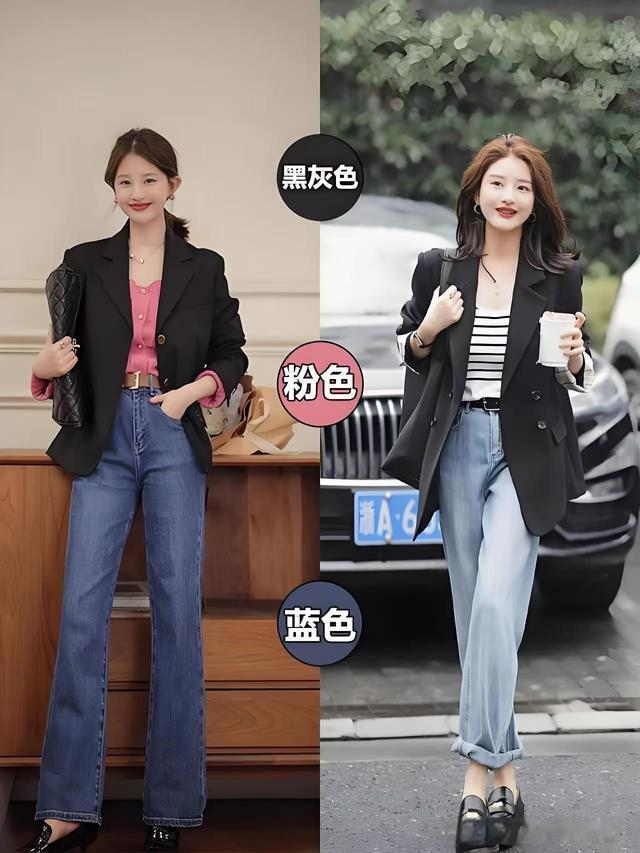 NO.12 黑灰色+粉色+蓝色蓝色的牛仔,