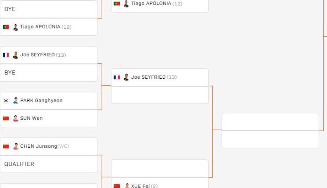 薛飞搭档变动薛飞将与曾蓓勋搭档参加男双,与韩菲儿搭档参加混双。此前,在混双资格赛第二轮中,中国组合孙闻/王晓彤以11-7、11-5连胜两局,以2-0领先,但最终被韩国组合朴康贤/梁夏银逆转。尽管开局完美,孙闻/王晓彤在优势情况下略显保守,未能把握胜局。