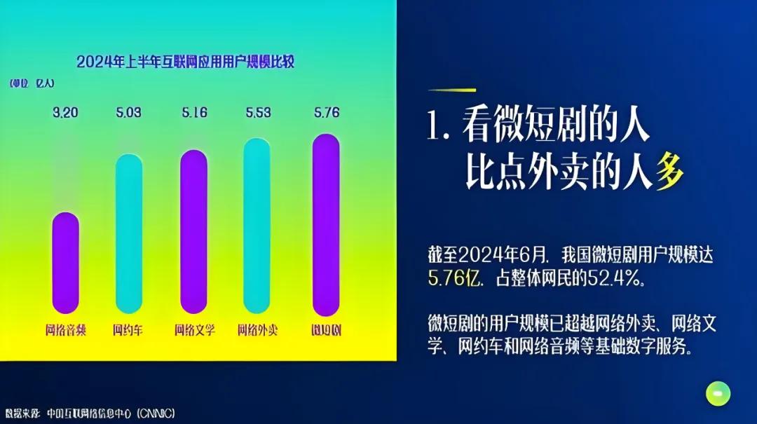 同时,微短剧形成了追看热潮。根据中国网络视听协会发布的《中国微短剧行业发展白皮书(2024)》显示,截至今年6月中国微短剧的用户规模已有5.76亿,渗透率达到52.4%。