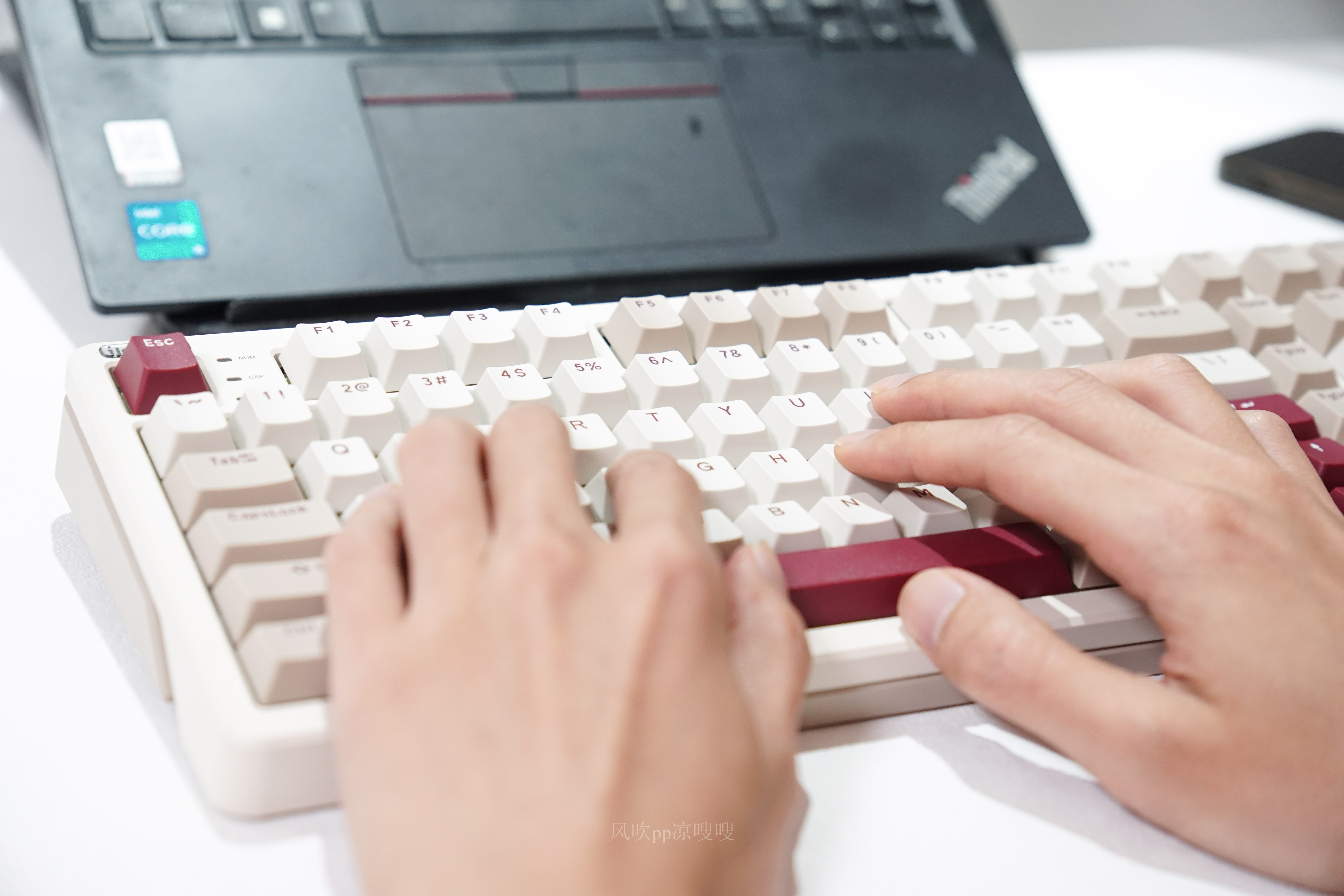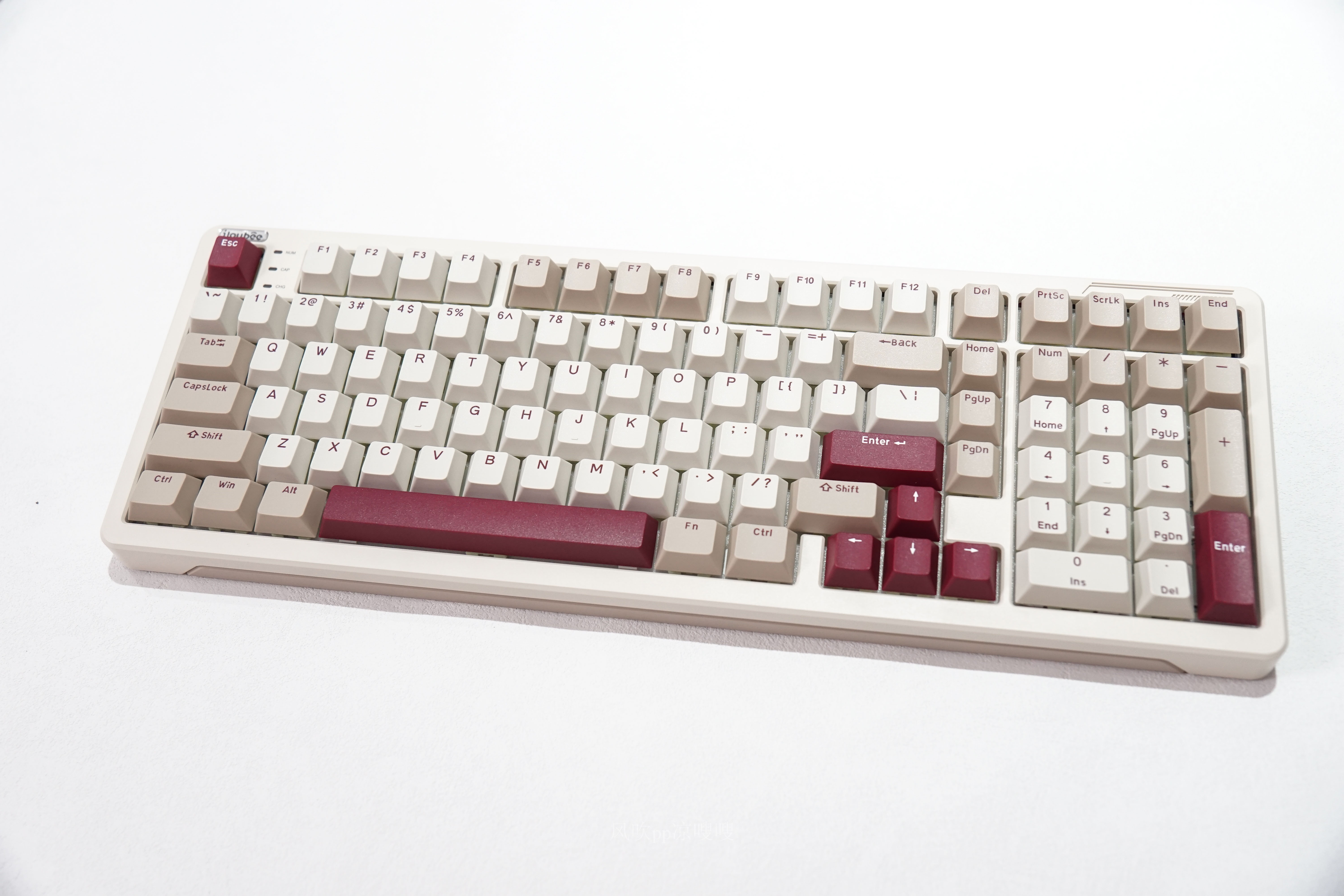 iLovbee B98拿到手的第一感受就是质感满满,特别是它的份量十足。布局上它采用了98配列101键设计,功能相对来说比较全面同时也兼顾了空间。视觉上,键帽采用了三拼色设计,红白配色把我瞬间拉回了红白机的时代,相信很多8090后对于这个经典配色毫不陌生,复古感扑面而来。
