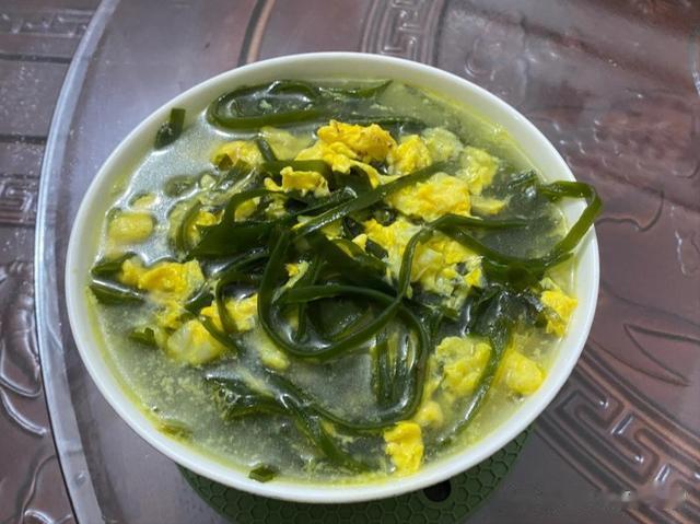第三道菜是一个海带鸡蛋滚汤,老广人爱喝老火靓汤,孙慧怡作为年轻一代,就喜欢这种降脂汤。海带切成丝,煮熟后捞起来,碗里有打散的鸡蛋液,直接把海带汤淋上去,鸡蛋汤就成型了,鸡蛋黄澄澄很新鲜,因为海带丝本身有大海的味道,所以不加盐就很美味,本来很好吃的一道汤,但是对于孙慧怡的婆婆而言,就不是滋味,感觉不够滋补。