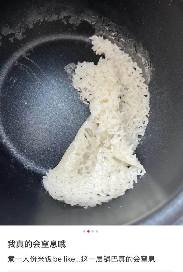 更何况,独居打工人在吃饭这件事上处处都是痛点:一个人吃的量,电饭煲煮起来连底都铺不满,半口是米,半口是锅底的锅巴。菜炒好了,饭还没熟。外面打包回来菜想当晚餐,缺一碗米饭,结果发现外卖“单点米饭不送”。