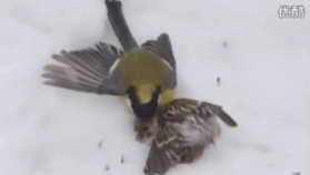 大山雀捕杀朱顶雀