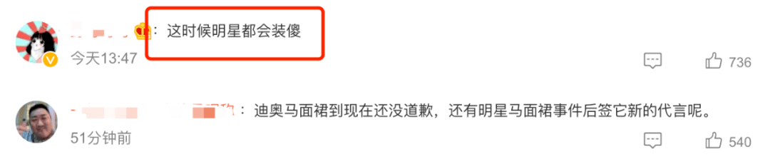 就像去年的迪奥马面裙事件,明星不仅没有解约,后续还有明星签约了迪奥,似乎以自己拿下了迪奥代言为荣。