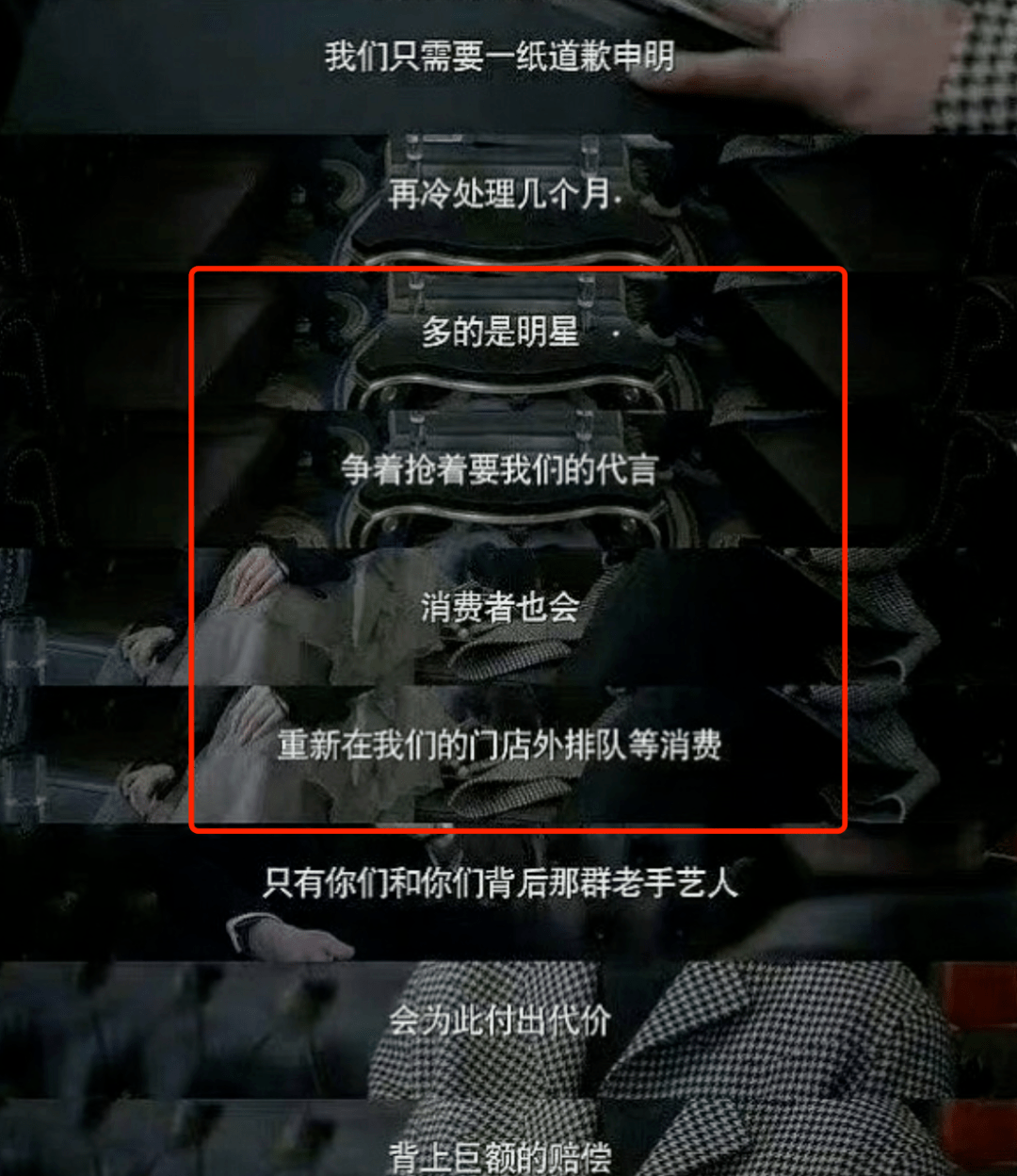 只要品牌装模作样刷出一纸道歉声明,用不了多久,明星就会抢着来代言,消费者也会排队重新购物。实际上,这些奢派不会有任何损失。