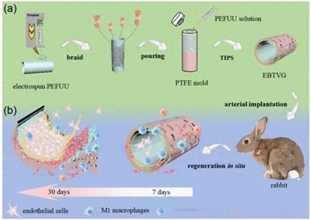 图1 EBTVG血管移植物的制备工艺和体内血管组织潜在的修复机制