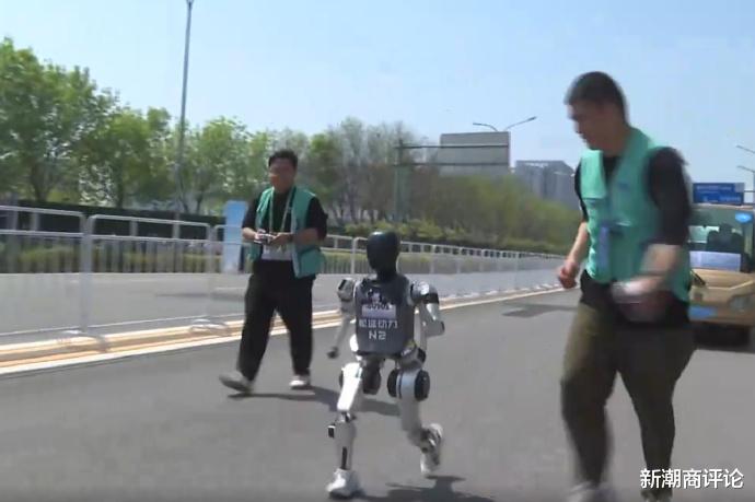 获得亚军的是小顽童队(参赛选手:松延动力N2),这款机器人身高1.2米,体重30公斤,理论最高配速3.5米/秒。值得一提的是,松延动力一共派出两支机器人参赛,使用的机器人的算法和性能不一样,小顽童队以“拟人与奔跑”为核心理念,专注于模仿人类自然步态的柔韧性与协调性。旋风小子队则讲究“速度与激情”,致力于探索机器人运动的极限。通过不同的算法配置,半马的实战将为机器人研究提供宝贵的测试数据。