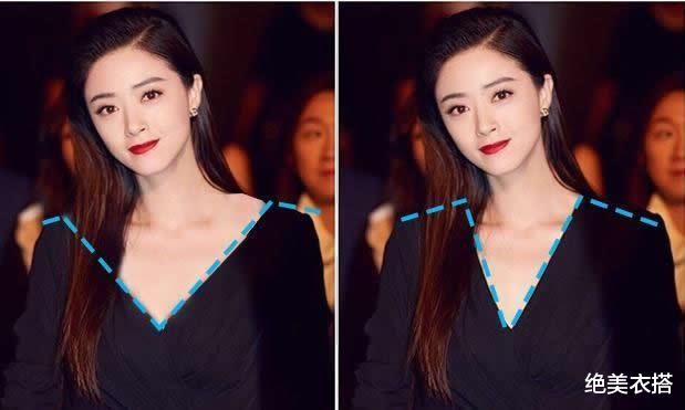V领,略偏小,有节制,对皱纹、松弛皮肤可以修饰。如果你脖子完美,且又胸部丰满,那不必受限,V领越大、越显瘦。