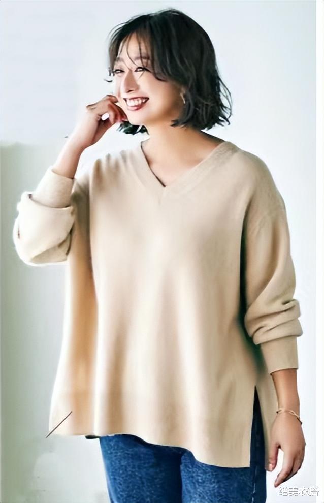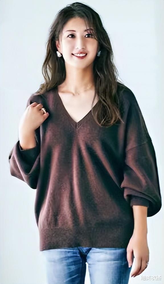 如果胸部丰满,再加上年龄成熟,没有优美的脖颈,该怎么选V领大毛衣呢?它有2个重点:一、中等偏小的V领;二、细腻质感针织。