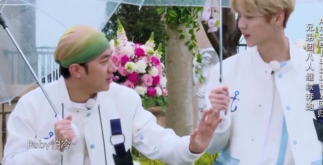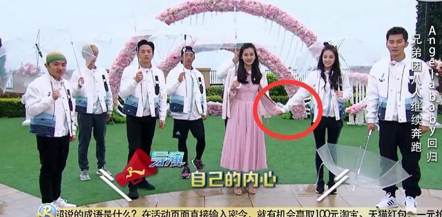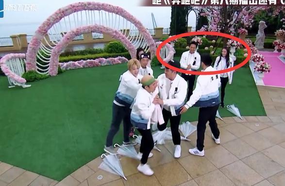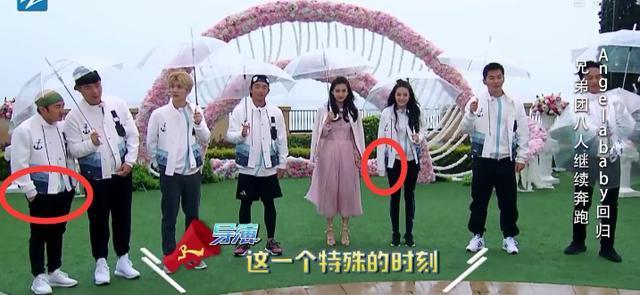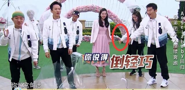 而站队的时候离得远,两个人手里都拿着伞,难道还能并肩站着?并且是因为两个人要分两队,要留出位置来,后面跟着队员,好区分,并不是所谓的不愿意站在一起。有个细节,当时二人在牵手,baby甩开热巴手的时候,热巴的手还是伸向baby的,可见,热巴是不排斥这种牵手的。