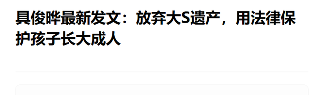 本文信息来源:大象新闻——2025年2月7日——具俊晔发文:放弃大S遗产,用法律保护孩子长大成人