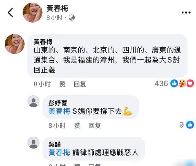 面对黄春梅公开呼吁内地网友支持她,为大S讨回公道这一事件,公众反应不一。有支持者,也有持不同看法的声音。这种分歧反映了公众在面对类似事件时的一种普遍心理,即在支持某一方之前,更多地关注其背后的真实动机。