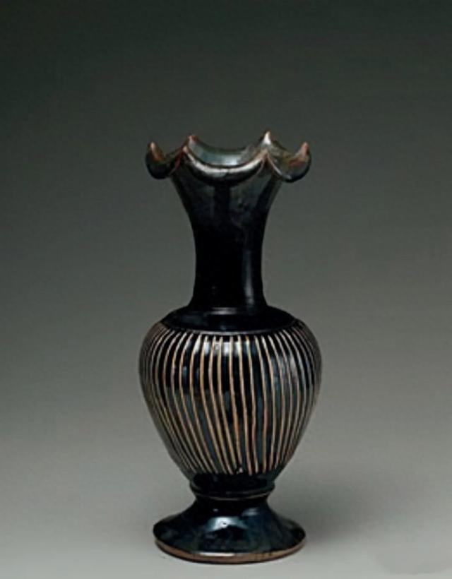金 淄博窑黑釉起白线花口瓶 山东博物馆藏