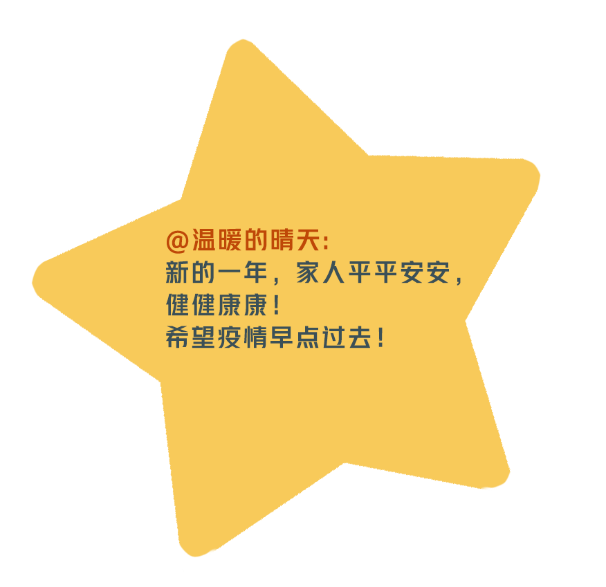@小丹丹:家人都平安健康,大家都事事顺利,顺心 @王富贵:希望大家愿望皆可成真,祝愿自己依旧脚踏实地 @日暮里:开开心心平平安安 @林夕:希望商妹儿找到男朋友