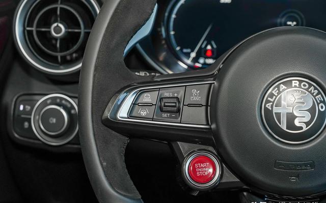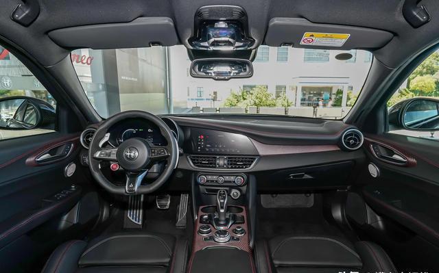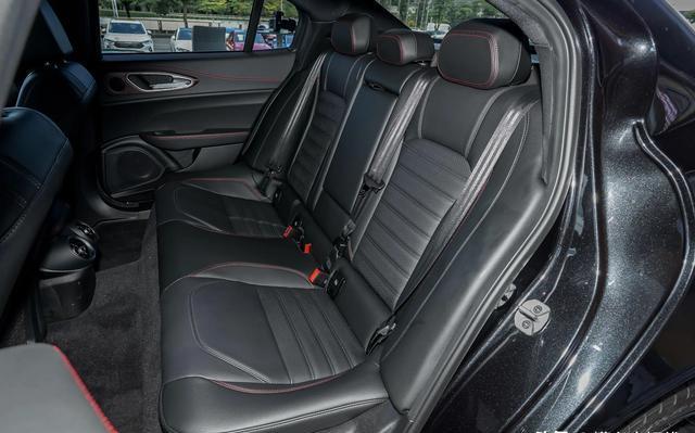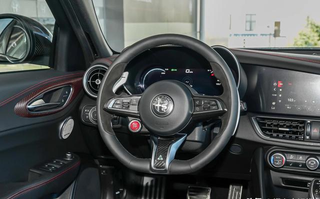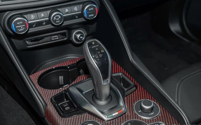 内饰上,Giulia朱丽叶四叶草Super Sport黑标限量版的中控台、中央通道以及门板这些地方用的是红色碳纤维饰板,方向盘有一部分是用Alcantara材质包着的,还有铝制换挡拨片,配着黑色缝线和碳纤维装饰。另外,这款车前排头枕上绣有红色“Super Sport”徽标,还有限量编号。